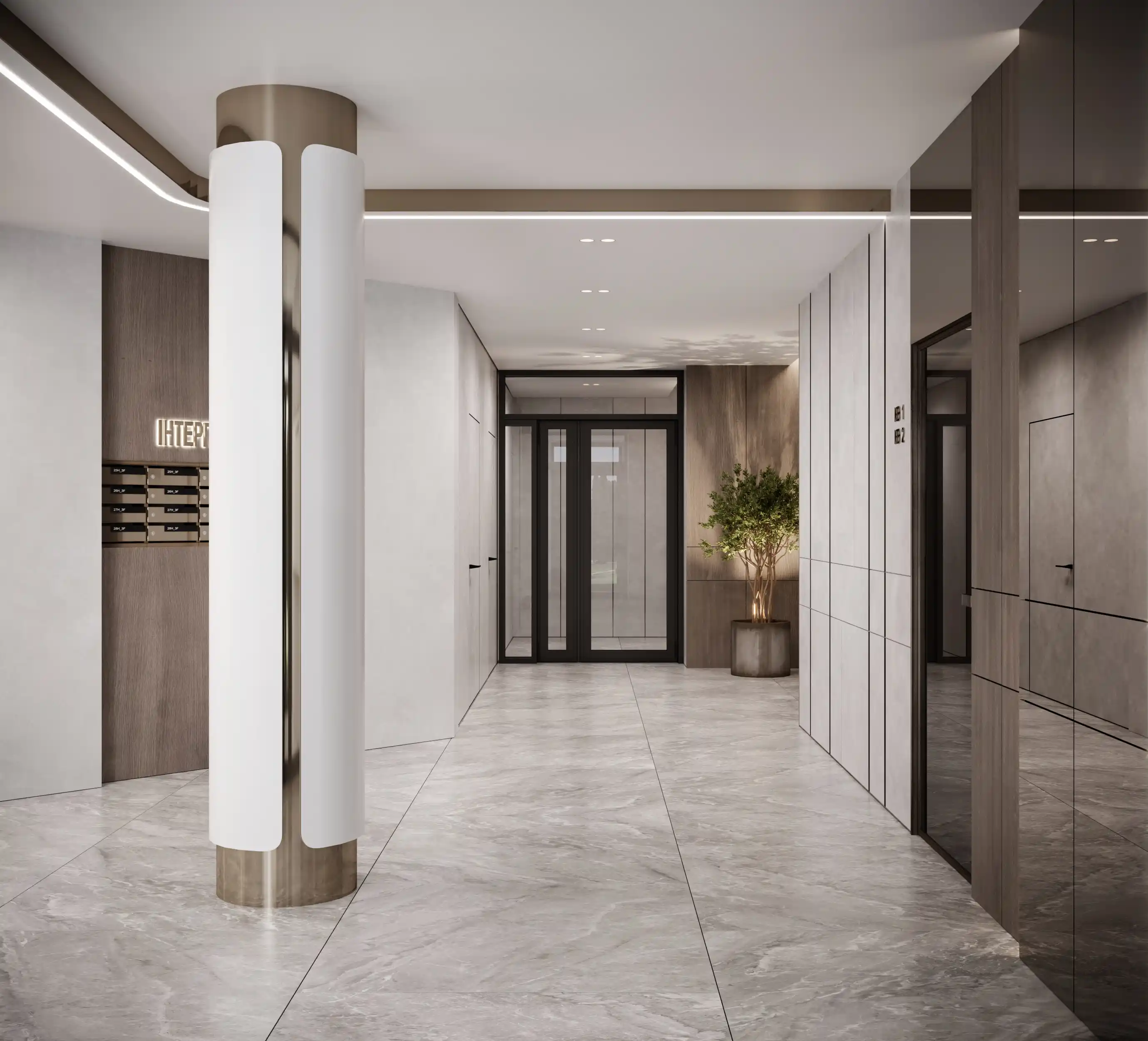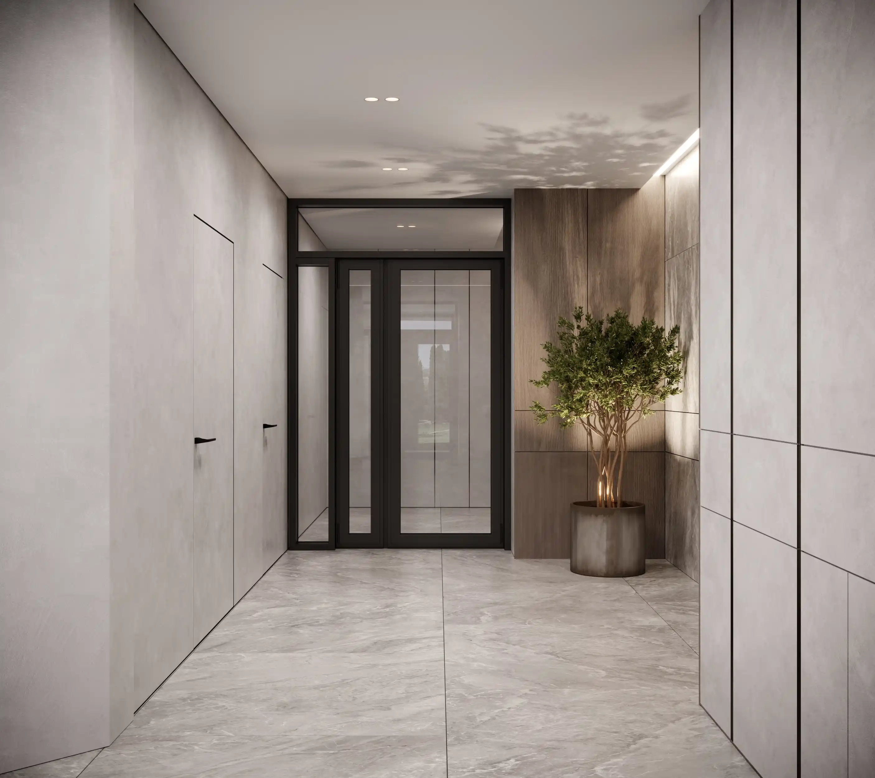 Просторий хол із сучасним дизайном, що створює відчуття дому ще на порозі.